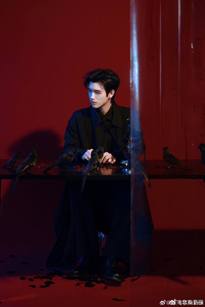 #陈飞宇红黑氛围感大片#破碎镜片、飘落羽毛、红蓝光影交织,@陈飞宇Arthur 一身黑衣,将冷感与张力拉满,每一帧都像电影里的危险反派!#陈飞宇[超话]#
