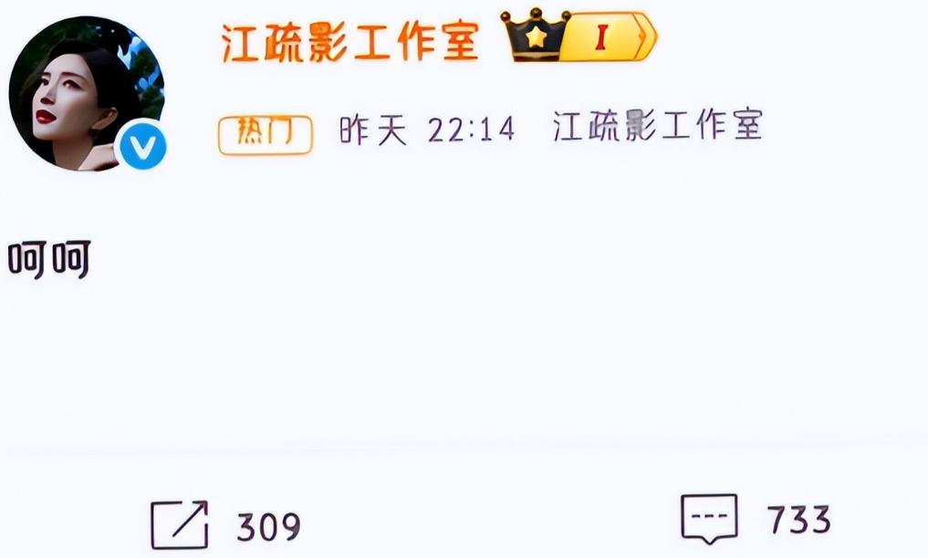 所以最后江疏影的回应就是简简单单的呵呵两字,这在旁人看多多少少有点傲慢了,但人干净确实是没办法的,
