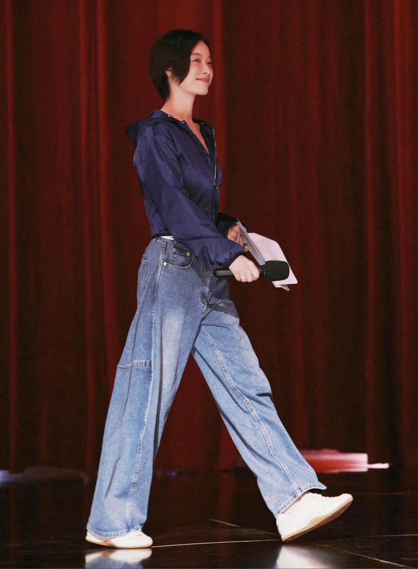 当发丝不再堆在肩上,服装的魅力也会更加显著,立领款式的长风衣,配条牛仔阔腿裤,裹上穿又美又飒。
