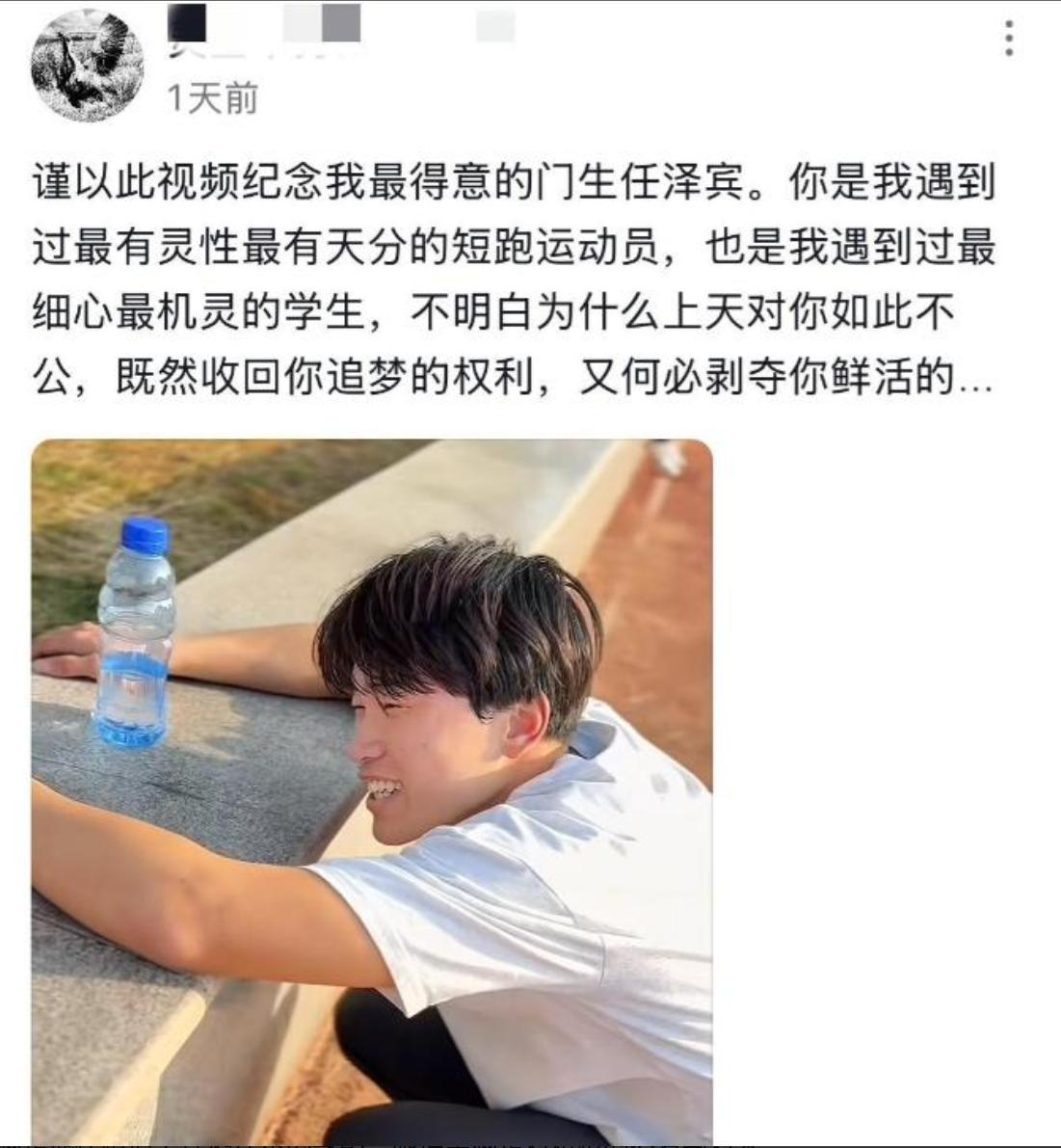 而19岁的任泽宾,他的画布还是一片空白,连一笔都还没来得及画。他的百米纪录,还只是一个模糊的草图,他甚至还没来得及想清楚自己要画什么,还没来得及规划自己的人生,生命就被命运匆匆收走了。