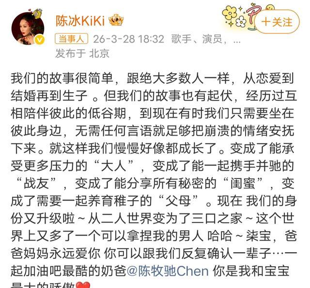 我把所有时间线拉成表格,发现一条暗线:2025年8月陈冰停更微博,同期小红书却偷偷上线了一个小号,只点赞母婴科普。9月陈牧驰被拍到月子中心,外套里揣着《新生儿护理手册》。11月法院“单身”判决生效,两人谁都没上诉。12月狗仔拍到产检,他们笑而不回应。3月娃出生,选在同一天发长文、晒孕照、带#陈牧驰当爸了#热搜,一套动作比剧本还丝滑。原来我们以为的“突然官宣”,只是人家排期到了。