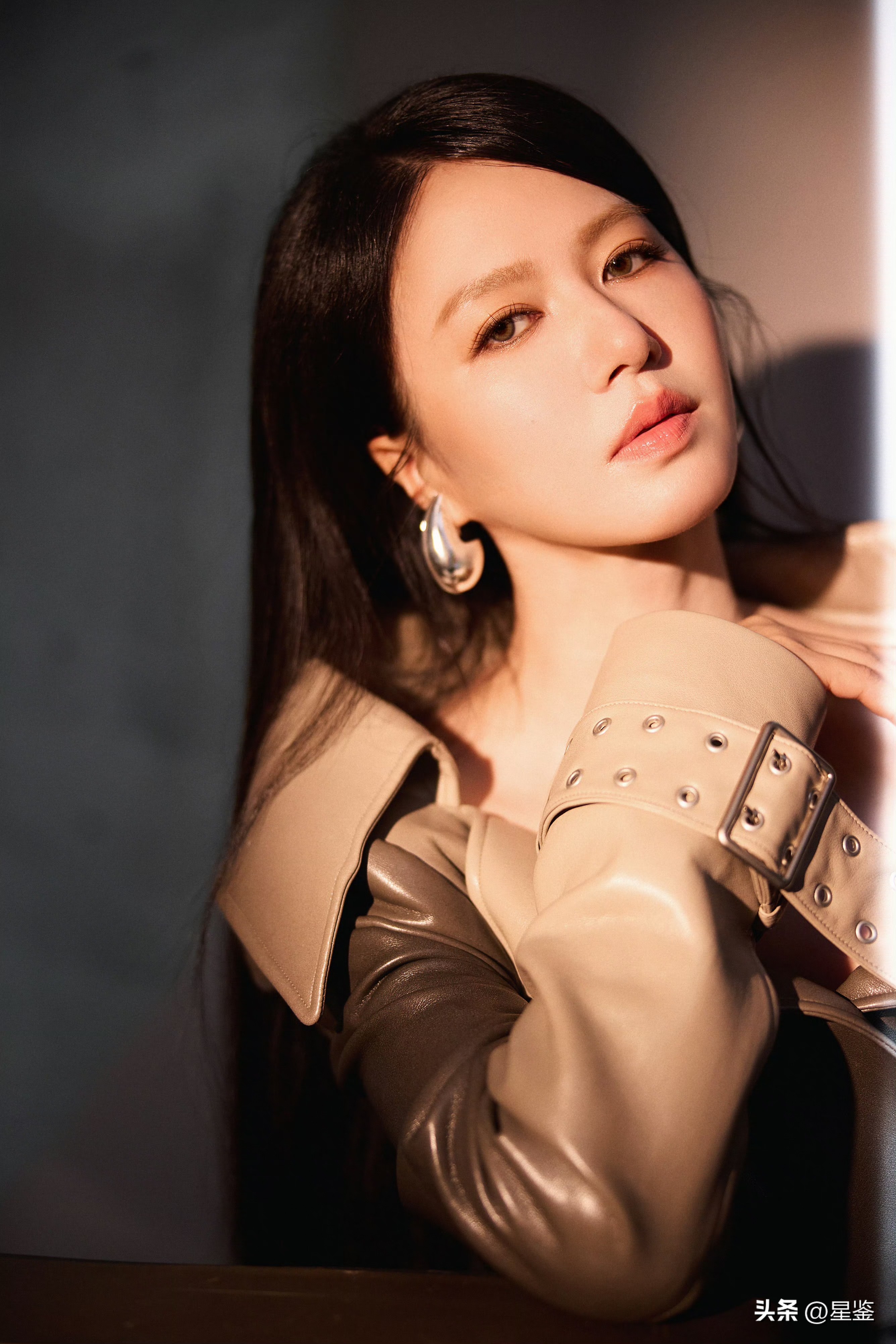 这组造型简直是大女主气场的肉包!谭维维一身复古渐变色皮衣,走在街上直接让人怀疑她是不是穿越了某个古代豪门小姐的打扮,皮衣的设计可谓是绝绝子,深棕到米白的颜色晕染不仅有复古感,还带着一丝酷炫的金属感,整个人看起来既温柔又高冷,绝对是让所有人驻足凝视的存在。,翻领设计更是点睛之笔,大翻领的设计勾勒出完美的肩颈线条,性感程度简直不要太高,完全不用刻意,随便一个眼神都能让人心动,铆钉腰带和双排扣设计精准到极致,腰肢一收,气场瞬间拉满,身材比例感强到让人移不开眼睛,袖口的绑带设计更是细节之王,既有女性的柔美感,又不失力量感,走动时随性而不失优雅,简直是穿搭界的完美结合。,配饰更是把整套造型推向了一个新的高度,夸张的银色水滴耳饰,瞬间提升了造型的辨识度,与皮衣的金属感完美呼应,让人忍不住想要摸一摸耳朵上的水滴,黑色长靴的选择更是贴心到位,利落又酷飒,和整体风格完美融合,刚柔并济,气场拉满,简直是配上这双长靴,谁都比不过她。,最让我惊叹的是这套造型的实用性,日常穿搭的时候,只需要去掉超长的绑带,换上一个简约的内搭,就能瞬间成为出街的焦点,要是去参加一些正式的场合,保留设计,直接就是全场的焦点,谭维维面对这套造型,表现得非常从容自信,松弛的状态下每一个眼神、每一个动作都透着独特的光芒,仿佛在用风格来彰显她的个性,这才是真正的穿搭天花板。,这套造型简直是大女主造型的典范,复古又酷炫,实用又高级,气场满满的,谭维维驾驭这套造型的状态更是让人心动,仿佛她是这套衣服的最佳代言人,无论是日常还是正式场合,这套造型都能让她轻松成为全场的焦点,真是太劲爆了!