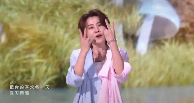 抽到这首甜歌的瞬间,王濛反复张嘴八次愣是没发出声,话筒拿起又放下,被网友封为"内娱拿放姐"。