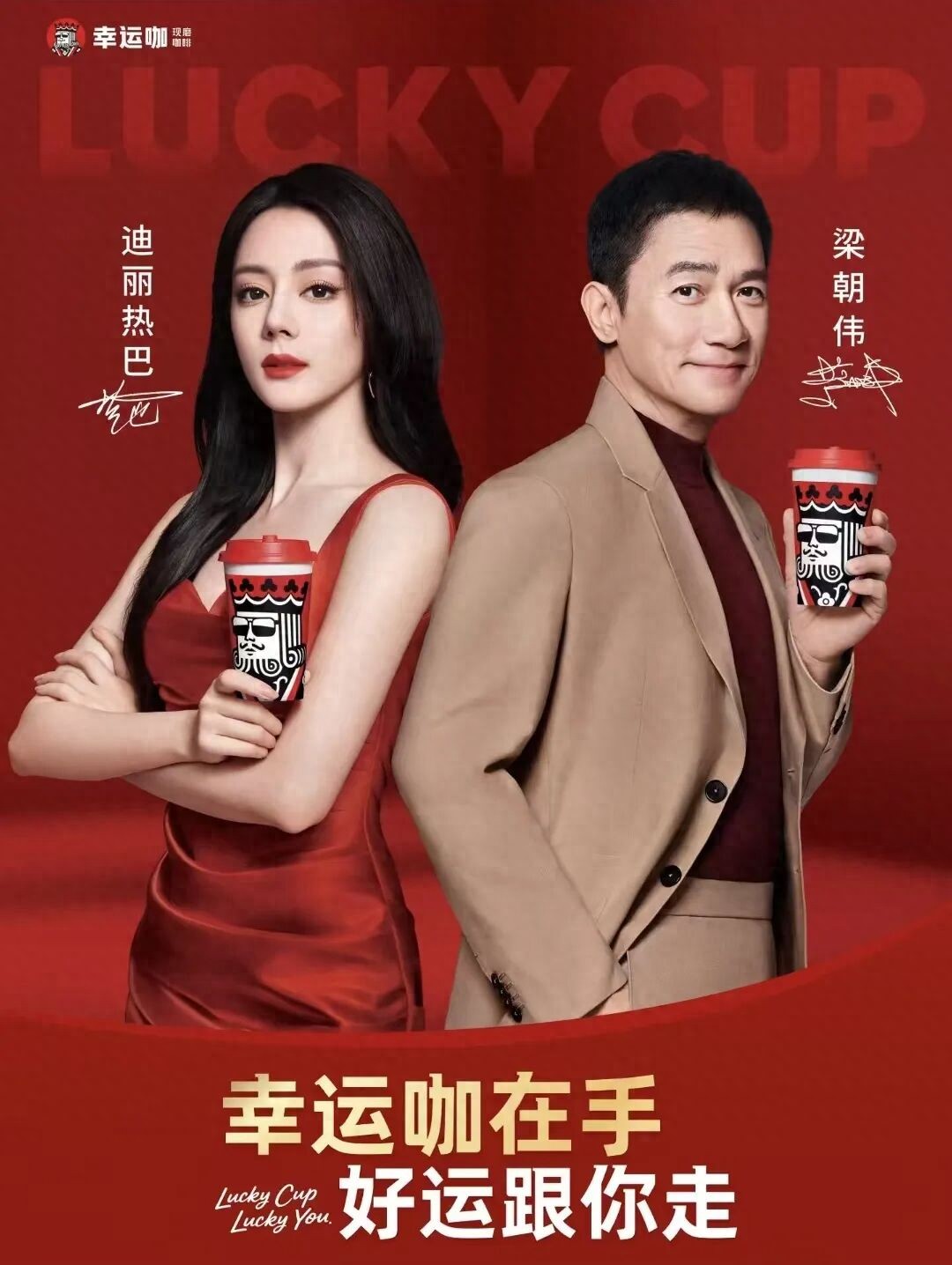 4月19日,幸运咖正式官宣迪丽热巴、梁朝伟出任品牌全新代言人,由两位联袂出镜的全新品牌TVC上线,门店主题包材也焕新。