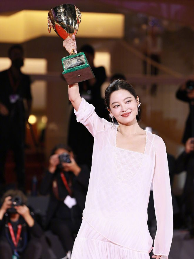 七年之后,辛芷蕾站在了国际舞台上,并且亲手举起了威尼斯国际电影节最佳女演员这座国际影后奖杯!
