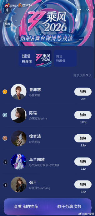 红裙短发造型搭配元气曲风,将“甜妹美学”发挥到极致:结尾定格wink、跑动时飞扬的裙摆被反复截修传播,网友直呼“甜到心尖发颤”“甜妹天花板”。其初舞台以413票观众支持值冲至第三名(仅次于曾沛慈、徐梦洁),印证了甜感与诚意的双重破圈力。