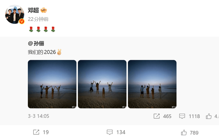 最有意思的还得是邓超,孙俪3月3日就发布了该动态,3月7日邓超忽然现身回应该状态了,是个四天才有反应,不知道超哥是不是网速不好。网友们纷纷调侃,邓超这样对待娘娘的发文会不会被罚跪搓衣板。还有不少网友调侃,邓超假期期间的快乐是不是都用黑换来的,因为之前孙俪也晒出一家四口胳膊和腿被晒黑的照片,邓超的黑可是首当其冲。