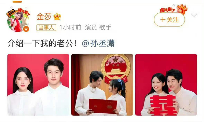 **金莎孙丞潇官宣结婚:从全网质疑到双向奔赴的浪漫答卷**,娱乐圈被一则让人惊喜的喜讯刷屏:歌手金莎与演员孙丞潇在微博晒出红底结婚登记照,两人以“介绍一下我的老公”和“介绍一下我的老婆”的甜蜜配文,正式官宣结婚,这场婚姻不仅跨越了19岁的年龄差,更经历了无数的风风雨雨,最终走向幸福的终点。,从2022年的一场饭局开始,这段感情的火花点燃了,刚毕业的孙丞潇一见钟情的金莎,让他开启了长达53天的“追爱攻坚战”,他不仅精心策划了159道不重样的菜肴,还复刻金莎童年记忆中的桂花糕,甚至在高原旅行时背起缺氧的金莎攀登陡坡,这些细节在恋爱综艺《爱的修学旅行》中被记录,原来的“心机软饭男”印象逐渐被打破,面对外界的质疑,孙丞潇主动提出婚前财产公证,以“收入9:1分配”(金莎主导财务)的理性框架守护着这段感情。,2025年12月,孙丞潇在冰岛钻石沙滩以520朵喷有金莎专属香水的白玫瑰铺就求婚现场,戒指内壁镌刻的两人英文名首字母,将瞬间凝成永恒,节目中他透露“三年前就开始攒钱买五金”的细节,更让外界看到他对这段感情的郑重,金莎始终坚定选择,甚至在舆论风暴中力挺男友:“他是我的人生礼物,即使很多人不理解。”,红底照片里的笑容与节目中“婚龄负两天”的俏皮互动交织,这段婚姻被视作当代亲密关系的成熟范本,从“豆腐汤过敏”的生理关怀,到“攒三年五金”的岁月承诺,每一步都在破译幸福的密码,这场跨越19岁的双向奔赴,不仅回应了所有质疑,更印证了爱情的本质:无关年龄标签,只关乎真心与坚守。,这段婚姻的故事感人至深,让人看到了爱情的力量和坚持的意义,正如金莎所言:“行动比年龄更重要。”从最初的质疑到如今的甜蜜,他们用实际行动证明了爱情的真谛,无论是节目中的互动,还是现实中的坚守,这对新人都展现了对感情的重视和对未来的期待。,或许,这就是当代爱情的模样——既有理性的规划,也有浪漫的追求;既有岁月的沉淀,也有热爱的坚守,金莎与孙丞潇的故事,不仅是一段浪漫的爱情故事,更是一曲动人的爱的赞歌。## 金莎孙丞潇官宣结婚:全网质疑遇见用心至上的浪漫,微博上一张红底结婚照刷屏,金莎"介绍一下我的老公",孙丞潇"介绍一下我的老婆",这张照片两句话,直接勾勒出了一段跨越19岁年龄差的姐弟恋的完美结局,恰好在节目《妻子的浪漫旅行2026》中,他们还以备婚情侣的身份筹备领证,现实与节目如此巧合,仿佛在演绎一场精心设计的浪漫剧。,从上海戏剧学院毕业的孙丞潇,一见钟情的金莎,这段感情的起点就在2022年的那场饭局,作为一个"心机软饭男"的称号被贴上标签的男人,他用连续53天的追求打破了外界的刻板印象,159道不重样的菜肴,复刻桂花糕的记忆,背起高原的金莎攀登陡坡,这些细节在《爱的修学旅行》中被真实记录,让最初的质疑逐渐消解,面对"图资源"的流言,他主动提出婚前财产公证,以收入9:1的理性框架守护这段感情,堪称用心至上的男人。,四年时间,从冰岛极光下的浪漫求婚,到红底照片里的坚定承诺,他们用实际行动打破了全网的质疑,520朵香水喷的白玫瑰,戒指内壁镌刻的英文名,金莎专属的香水味道,这些细节都在诉说着这段感情的深情,孙丞潇三年前就开始攒钱买五金,节目中透露的细节更让人感动,金莎的选择更是令人敬佩,她坦言"除非和最爱的人,否则不愿将爱情变成亲情",在舆论风暴中力挺男友,堪称是真爱无极限的女强人。,他们的婚姻被视作当代亲密关系的成熟范本,婚前财产公证的理性边界,极光求婚的浪漫肌理,都在书写着这段幸福的故事,金莎说"行动比年龄更重要",豆腐汤过敏的生理关怀,攒三年五金的岁月承诺,每一步都在破译幸福的密码,这场跨越19岁的双向奔赴,不仅回应了所有质疑,更印证了爱情的本质:无关年龄标签,只关乎真心与坚守。,这段感情从"全网唱衰"到"全民祝福"的蜕变,正是用行动诠释着爱情的力量,或许,真正的爱情从来都不是年龄的标签,而是用心经营的结果,金莎和孙丞潇的故事,让人看到了真爱的坚韧与浪漫的坚守,确实太香了,劝到。