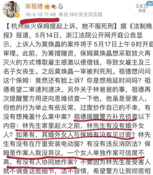 而纵火的始作俑者,正是他们家雇佣的保姆莫焕晶,