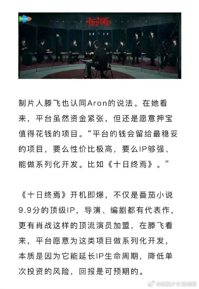 十日终焉爆剧,十日终焉的回报是可预期的,咱就说这个爆剧热度实感有,燥侯正式的见面,拍摄顺利呀!@肖战