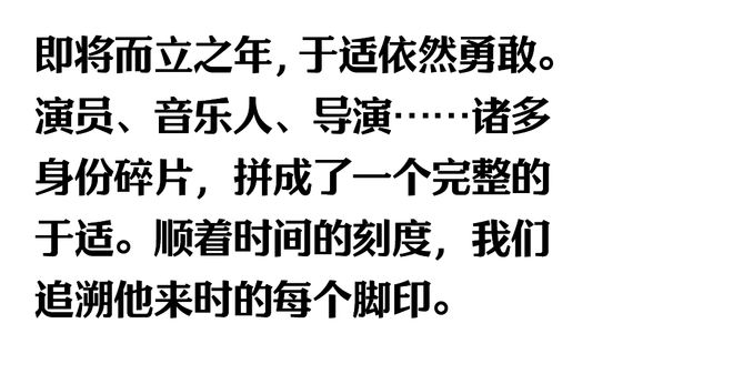 在专辑《适诗》中,恰巧有一首名为《而立之年》的歌。于适在歌词里写道:“回忆不断袭来,我开始摇摆,闭上双眼也无法躲闪,一人已酒过三巡,人生不就是摇摇晃晃,不知不觉已过了多年,恍恍惚惚已快到而立之年……慢慢张开双眼,我开始释怀。”