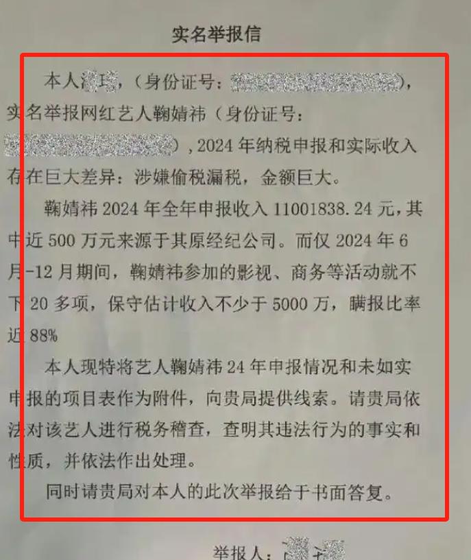 “鞠婧祎在某一时间段内,申报收入仅为1100万元,但其实际收入却超过5000万元,瞒报收入的比例高达85%以上!”