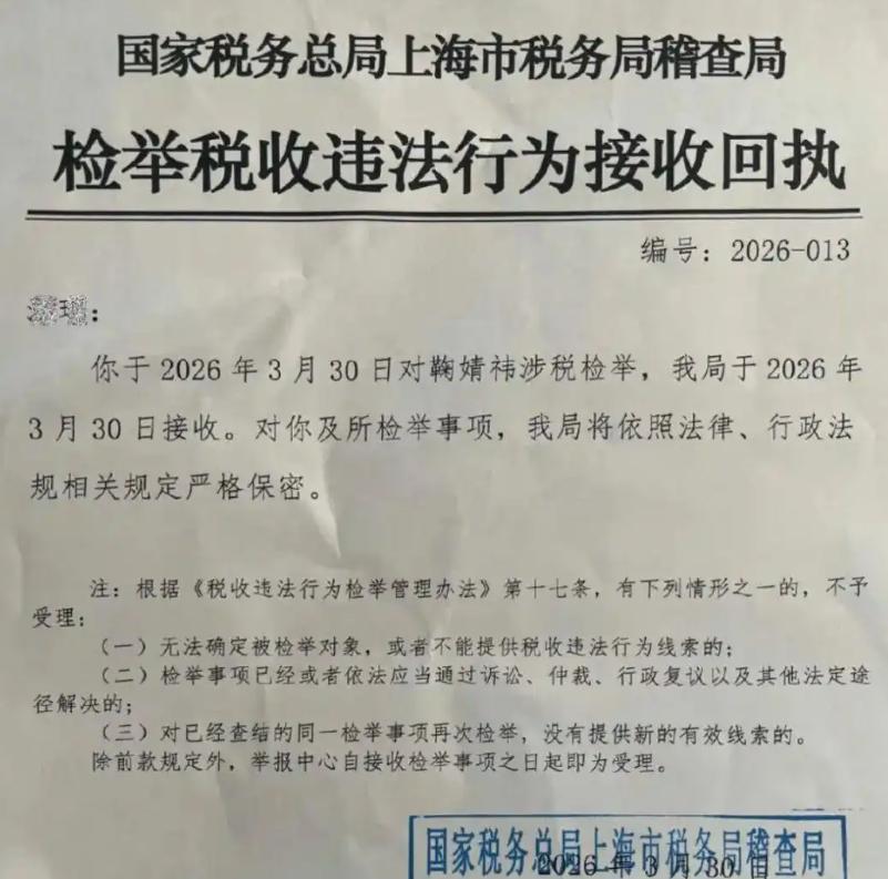尤其是在看到上海市税务局稽查局收到了这封实名举报信,并出具了接收回执之后,无数网友更坐不住了。
