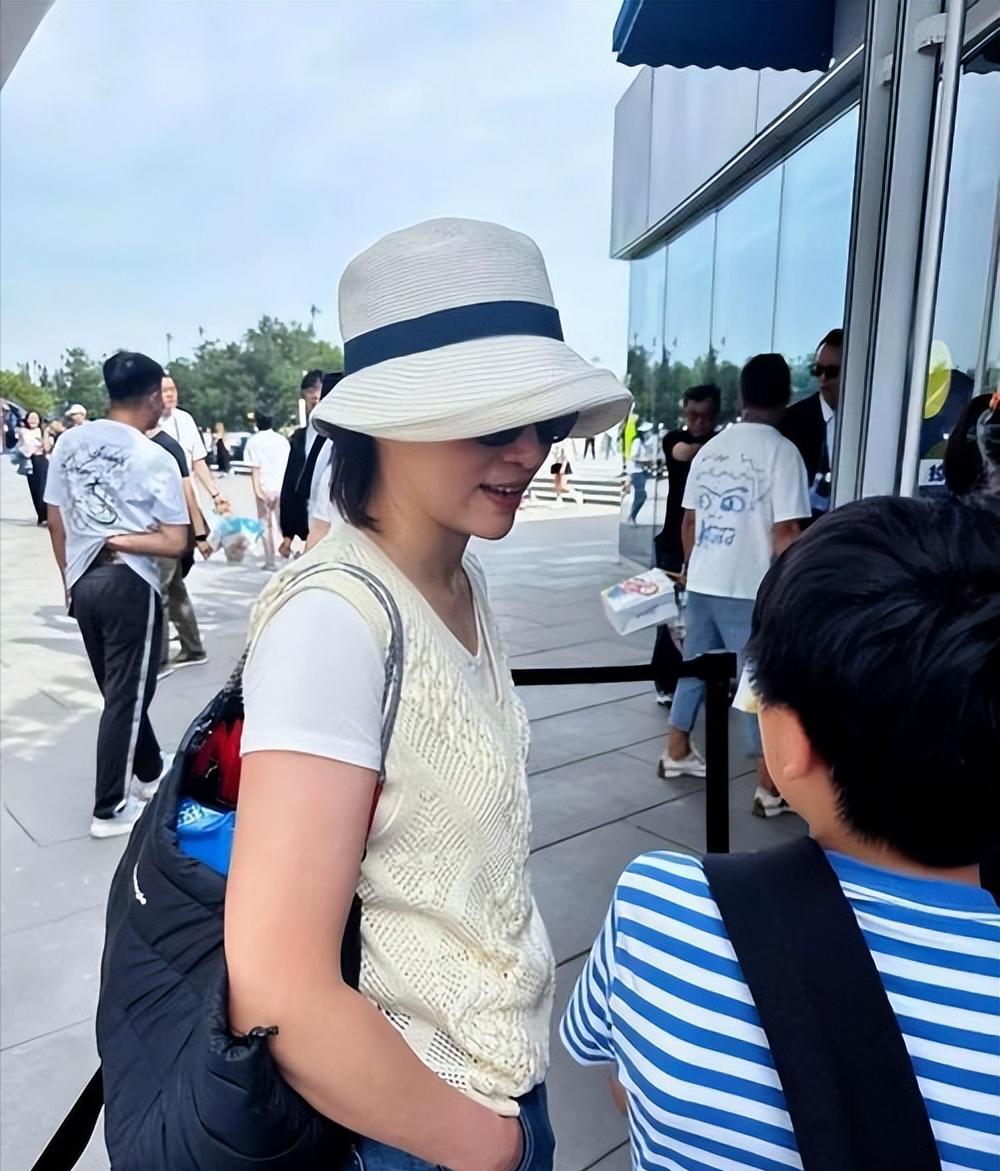 那张照片里,她剪掉了一头长发,戴着眼镜,没有打扮,就是一个普通妈妈的样子。