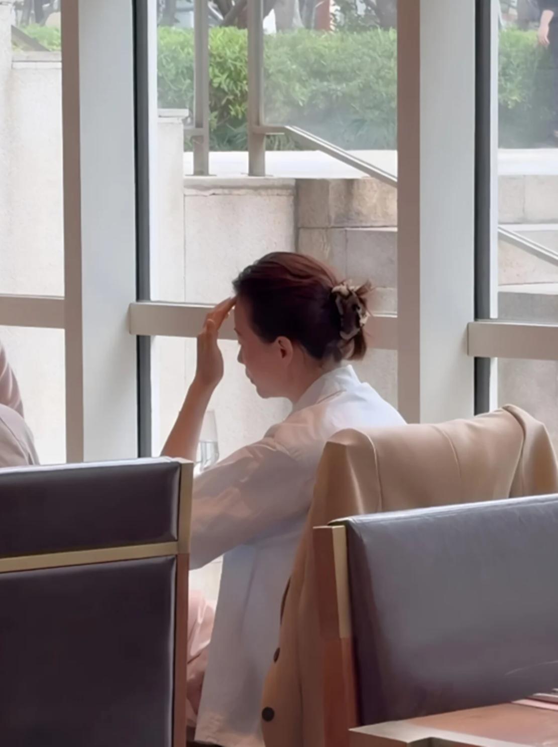 上海某餐厅,白衬衫,低发髻,和朋友吃饭。网友拍了背影,发到网上。