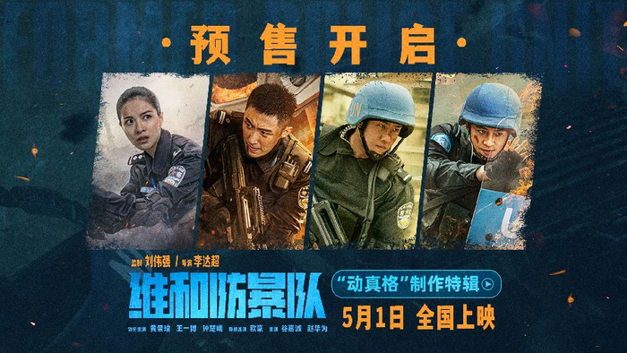 新快报讯 黄景瑜、王一博、钟楚曦、欧豪主演的动作片《维和防暴队》今日(16日)正式开启预售,并发布“动真格”版制作特辑及“热血逆行”版角色海报,揭秘了剧组怎样在各方面还原中国维和警察海外维和的真貌。影片将于5月1日上映。