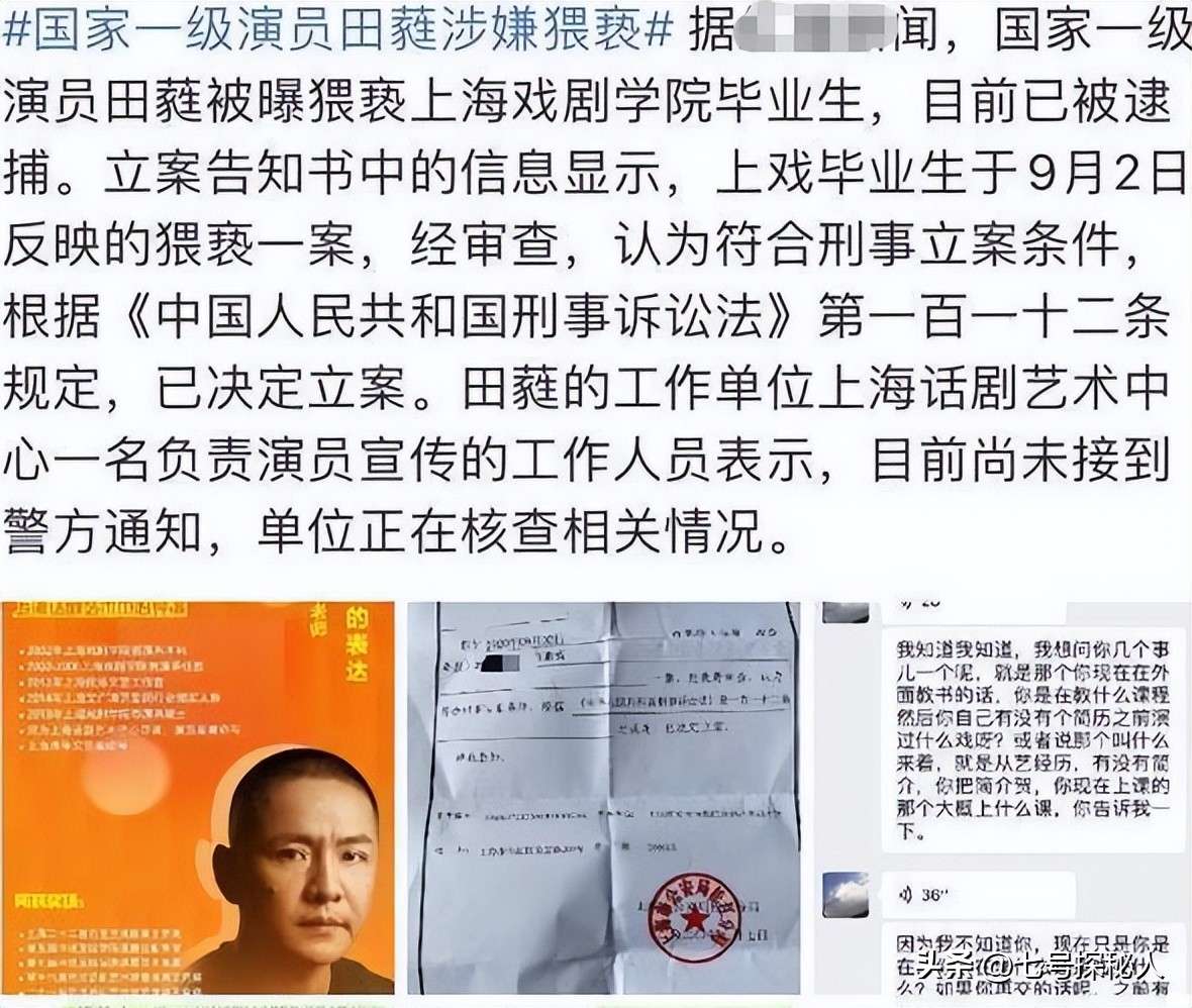 2021 年 9 月,田蕤以强制猥亵罪被判处有期徒刑二年六个月。