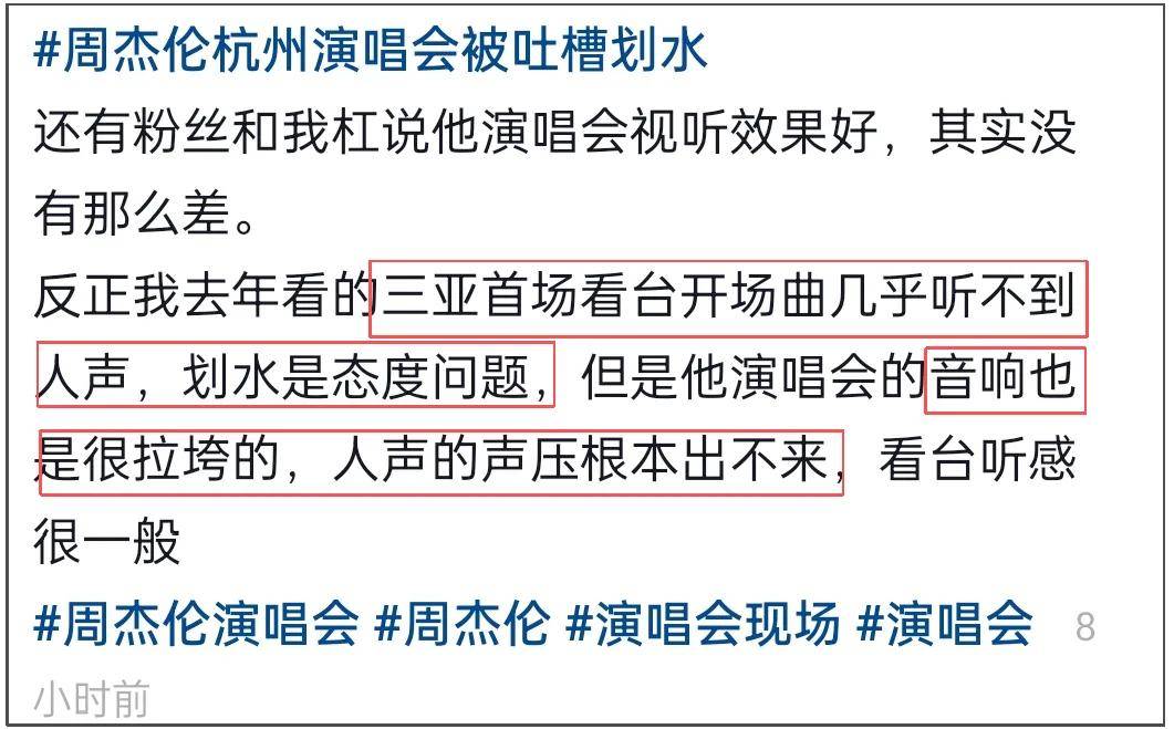 许是吐槽周杰伦话筒声音演唱小的问题太多了,不少粉丝也从情怀中清醒了过来,表示划水是态度问题。