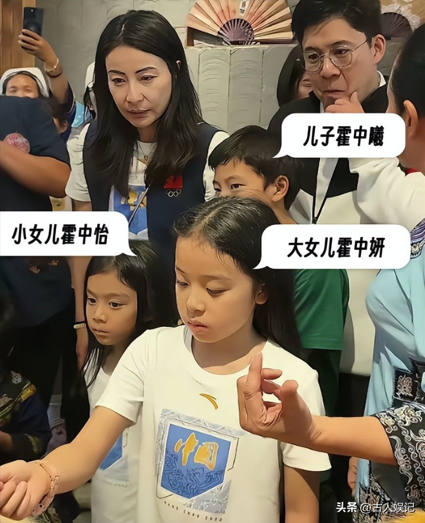 两个妹妹各背着一个熊熊造型的小背包,大女儿霍中妍戴着眼镜,五官轮廓酷似奶奶朱玲玲,小女儿霍中怡则被路人说是父母的“合体版”。
