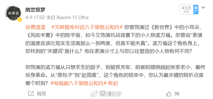 说实话,追《八千里路云和月》之前,我是冲着王阳去的,毕竟“叔圈顶流”嘛,结果发现好像孟万福更出彩。这不是我一个人的错觉。豆瓣、微博、小红书,到处都在问:王阳是不是拿了个假男主剧本?黄澄澄演的孟万福,更加令人印象深刻?
