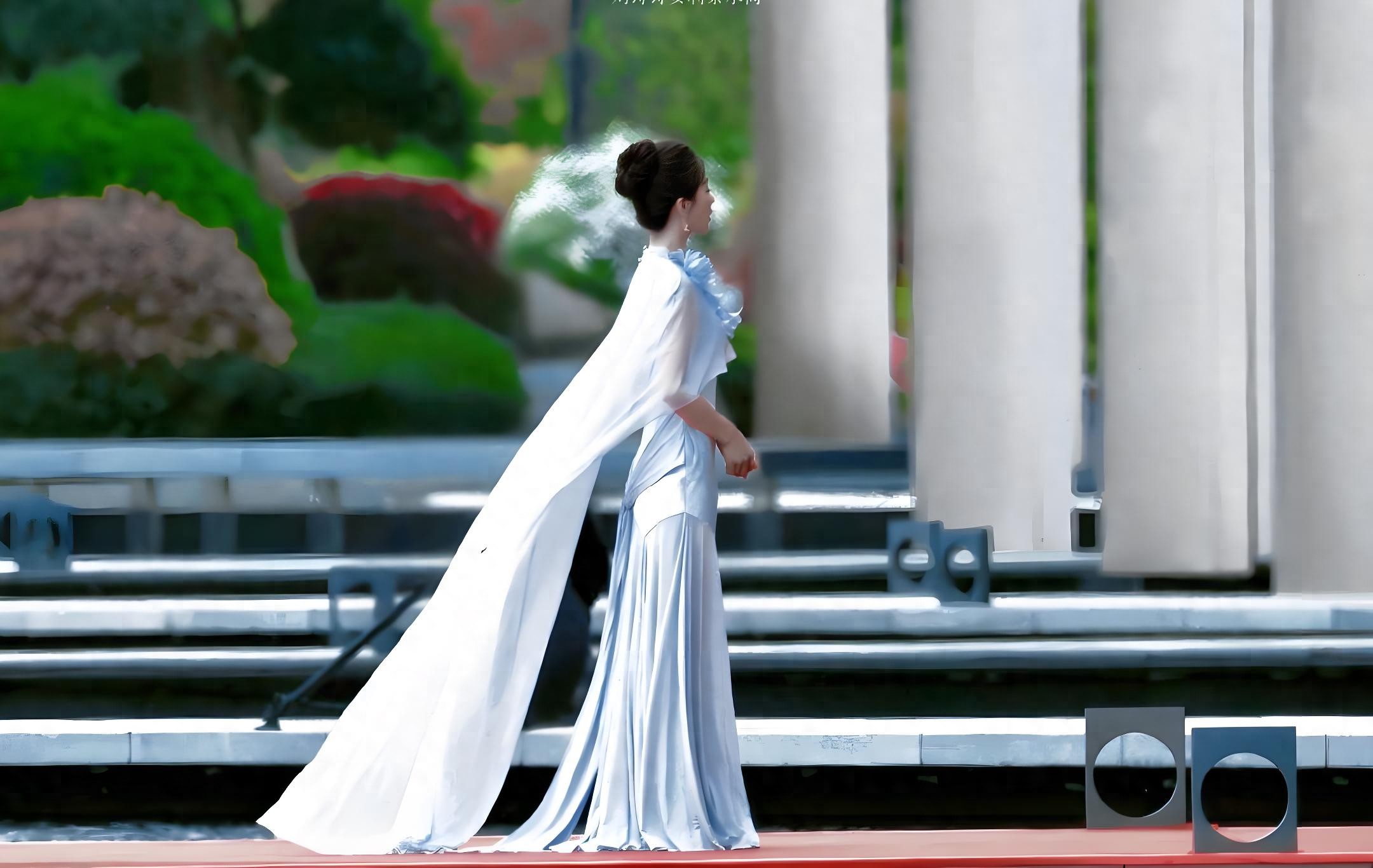 这款Self-Portrait特别定制纱裙,以清透薄纱为料,缀以细腻刺绣,渐变裙摆轻盈如春日流云。站在舞台上的她,恰似从江南春卷中走出的佳人,清冷温婉的气质与周遭春日氛围完美交融,被网友盛赞“把晴空穿在了身上”。