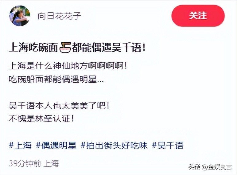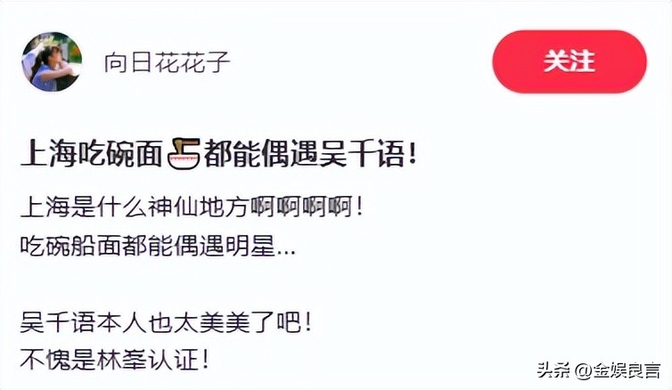 本以为盛典上的吴千语已经是状态天花板,没想到4月15日,又有网友在上海一家普通餐馆偶遇了她,彻底打破了明星的“完美滤镜”。