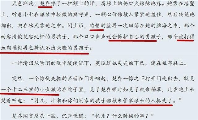 原小说中楚乔本是十一处副指挥官楚乔少校,因为飞机爆炸,灵魂穿越到七岁的小女奴荆月儿身上。