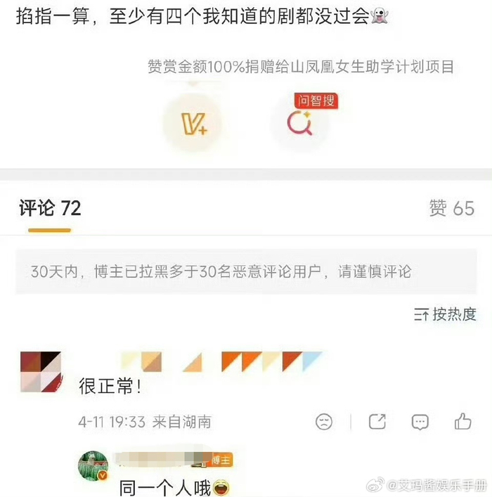 有瓜主爆料有位艺人至少四部剧都过会失败