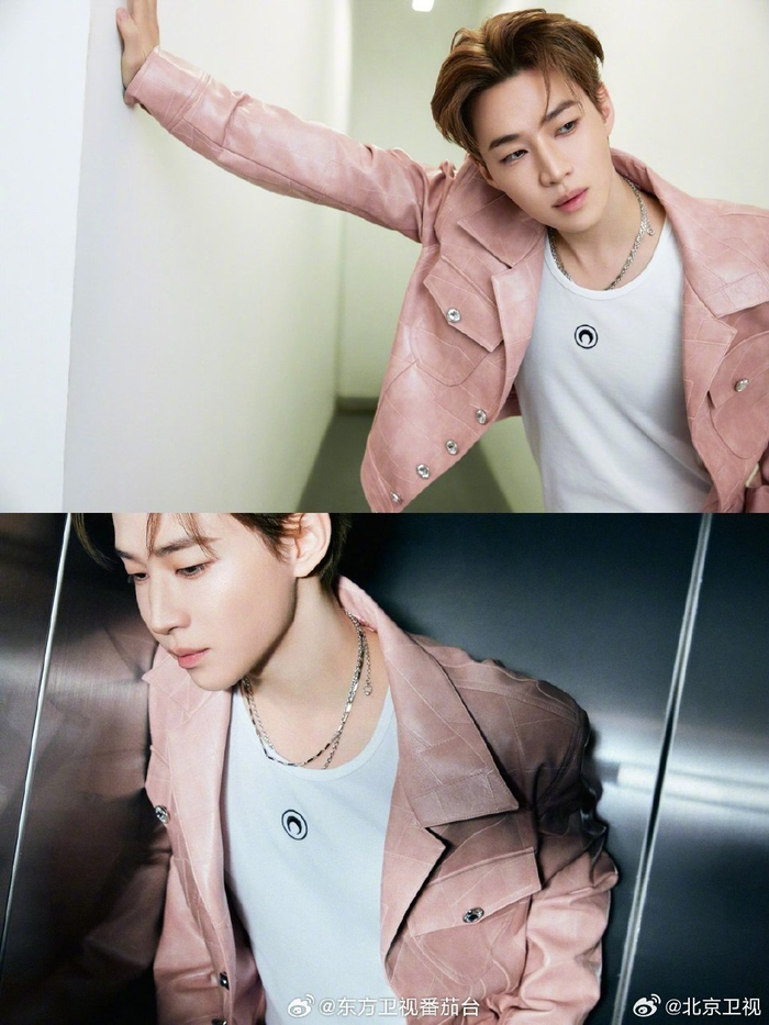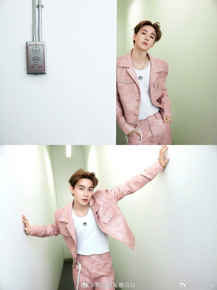 #刘宪华粉夹克浪漫有型# @刘宪华Henry-Lau 粉色皮质压纹夹克搭配白T,佩戴酷酷的金属感和系结设计配饰,浪漫又有型 #刘宪华[超话]#