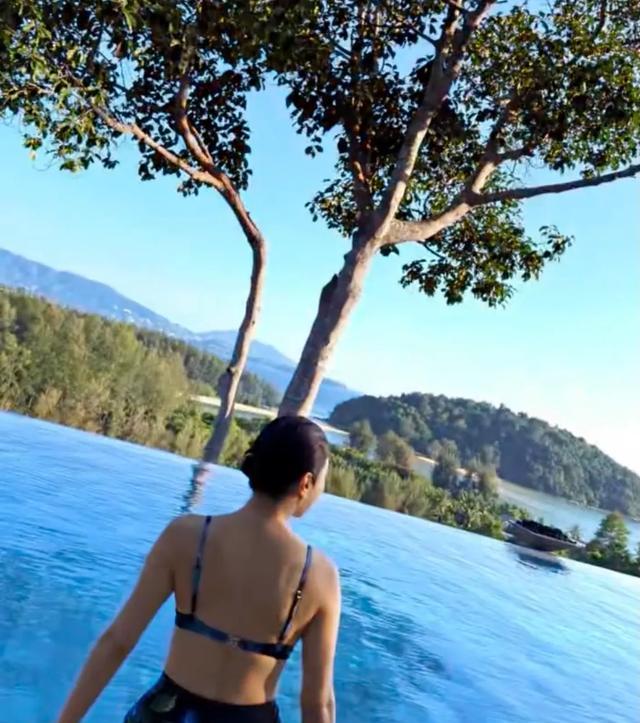 别急着抄作业,她住的那间安纳塔拉,基础房五千起步,无边泳池的水都比打工人的年假贵。真正扎心的是,她游完一圈上岸,背脊线像开了美颜拉皮,而普通人游完只剩下一身“免费马赛克”——泳衣边勒出的肉。