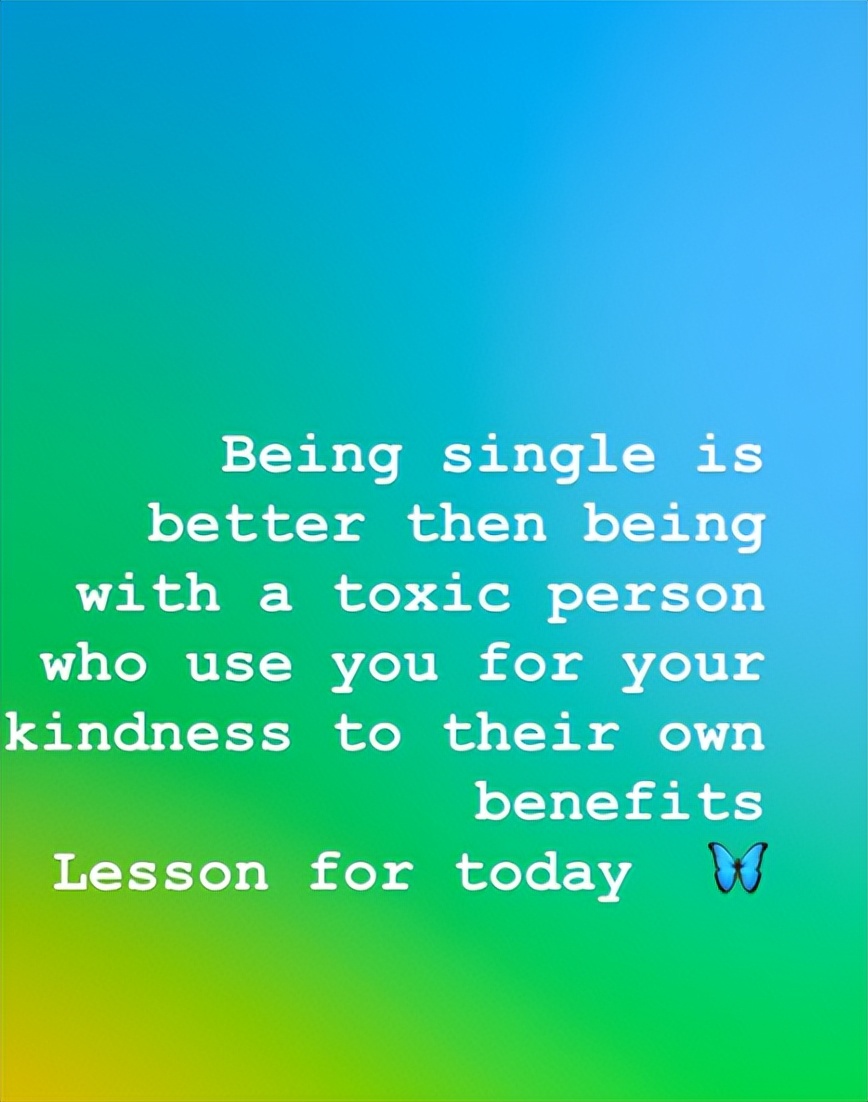 4月30日,何家华在社交账号发布了一段文字,她写道:单身总比和利用你的善良为己所用的有毒之人在一起强。