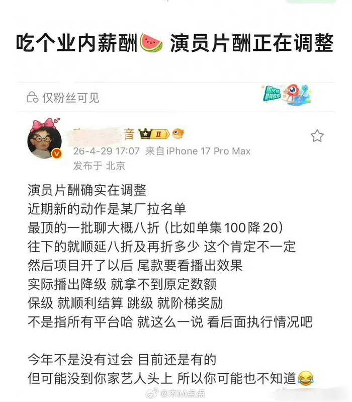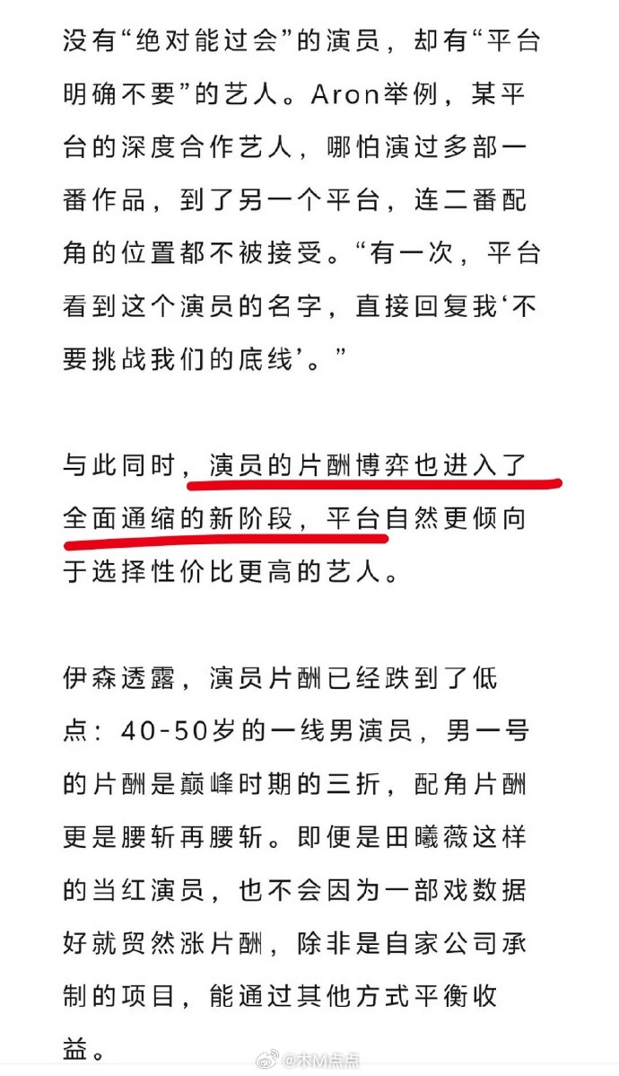 但,年年都在说演员会降片酬,一看片酬还是几百万,不包括食宿交通…说按播出情况给尾款,还是烂剧一堆