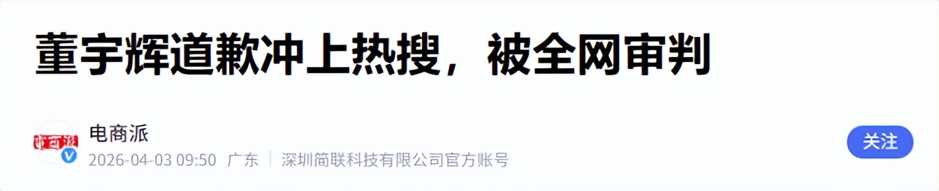 电商派2026-04-03《董宇辉道歉冲上热搜,被全网审判》