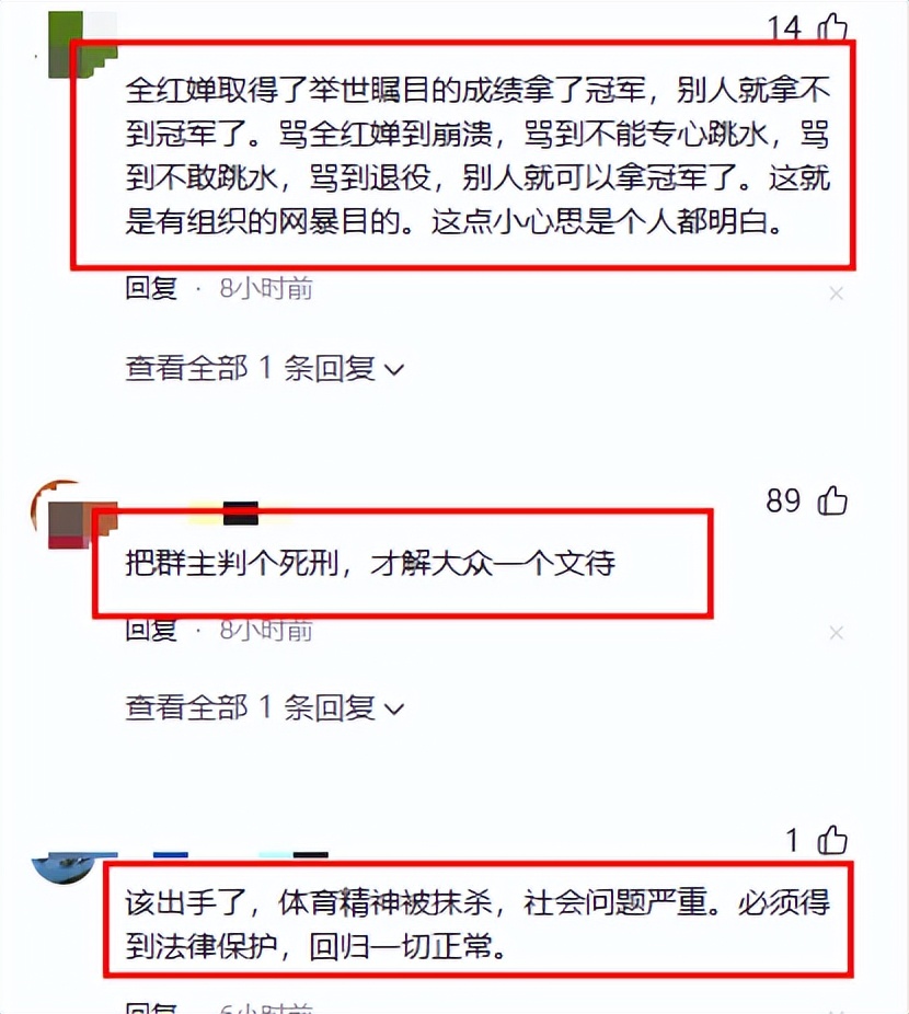 **劲爆!全红婵被网暴,竟还有282人专门为她准备的“维护小天使”群!** ,体育圈一件劲爆事件引发全网热议!全红婵的小可爱被网暴,简直让人“演都不演了”!三月底,全红婵在采访中红着眼眶,恳求那些攻击她的人“别骂了,也别骗我家里人”,谁能想到,眼前这位拼尽全力的跳水小天使,竟然被一群人围攻得连连后退! ,这群人不简单,自称“维护全红婵的先锋队”,专门建了一个282人的微信群,群规明明白白写着“禁止攻击其他运动员,全红婵除外”!这简直是专门为她准备的“维护小天使”群,连装都懒得装了! ,消息一出,全网炸了!4月8日,全红婵所在的广东省二沙体育训练中心报了警,国家体育总局也放话“绝不姑息”,大家都以为这下总算能消停了吧?天真! ,报警的消息才上热搜不到24小时,另一桩更离谱的事又被翻了出来——不是一波,而是两波!不止全红婵一个受害者,谷爱凌、朱婷、樊振东、王楚钦,甚至陈梦、樊振东等运动员也被网暴,这简直是体育圈大清洗! ,更让人细思极恐的是,这个“维护全红婵”的群,竟然混入了现役或退役运动员、业内人士!连圈内人都参与其中,这事的性质就完全变了——这不是普通网友的“口嗨”,而是带有某种行业背景的集体霸凌! ,消息传开后,舆论炸了锅!全网都在问:这群人到底是谁?一个为国家拼下无数荣誉的小姑娘,凭什么要承受这些?这简直是体育界的“暗流涌动”! ,这次,官方也没有像以往那样,4月8日,全红婵训练中心发布了一则声明,措辞相当严厉:已经向公安机关报案,将通过法律途径坚决追究网暴者责任!国家体育总局游泳运动管理中心也发声了:“不管涉及任何人,一经查实都将严肃处理,绝不姑息”! ,这话的分量,圈内人都懂!这事已经不只是某个训练中心的事,而是整个体育系统要动真格了! ,可你以为报警和官方声明能立刻让所有人闭嘴?太天真了!就在全红婵训练中心报警的消息冲上热搜后,还不到24小时,另一幕更让人寒心的剧情在另一个角落里被翻了出来——网暴已经成为了一场“运动”! ,检察日报的评论文章指出,不特定关系人组成的微信群具有公共空间属性,群成员在群里发布侮辱、诽谤、污蔑或者贬损他人的言论,可能构成名誉权侵权,应承担法律责任!群主对群成员负有管理职责,如果群主未尽到管理责任,同样要承担相应的侵权责任,情节严重的还可能面临治安处罚甚至刑事责任!也就是说,这个282人群的群主和管理员,这次恐怕跑不掉了! ,从全红婵在采访中含泪恳求“不要再骂我了”,到训练中心报警,再到国家体育总局表态“绝不姑息”,这条线走完只用了不到十天时间!这背后折射出的变化是:网络暴力不再只是“道义上不对”,而是正在变成“法律上不行”! ,躲在屏幕后面、以为“法不责众”的那些人,这次可能要失望了! ,一个17岁的小姑娘,在跳台上拼尽全力为国家拿金牌,在跳台下还要承受几百号人的集体网暴!这件事说到底,不是全红婵一个人的事!如果这次不能让那些在群里嘻嘻哈哈辱骂奥运冠军的人付出代价,那明天,还会有下一个运动员成为靶子! ,我们应该从源头杜绝,防止此类事情再次发生!正如检察日报在评论中所言:网暴者躲在屏幕后“法不责众”的幻想,在法律面前没有容身之处! ,这次事件不仅让我们看到了体育圈里隐藏的“黑暗面”,也让我们深刻认识到网络暴力对个人的心理伤害和社会的负面影响,希望每一位网民都能理性表达支持,维护体育精神,共同营造一个健康、文明的网络环境!