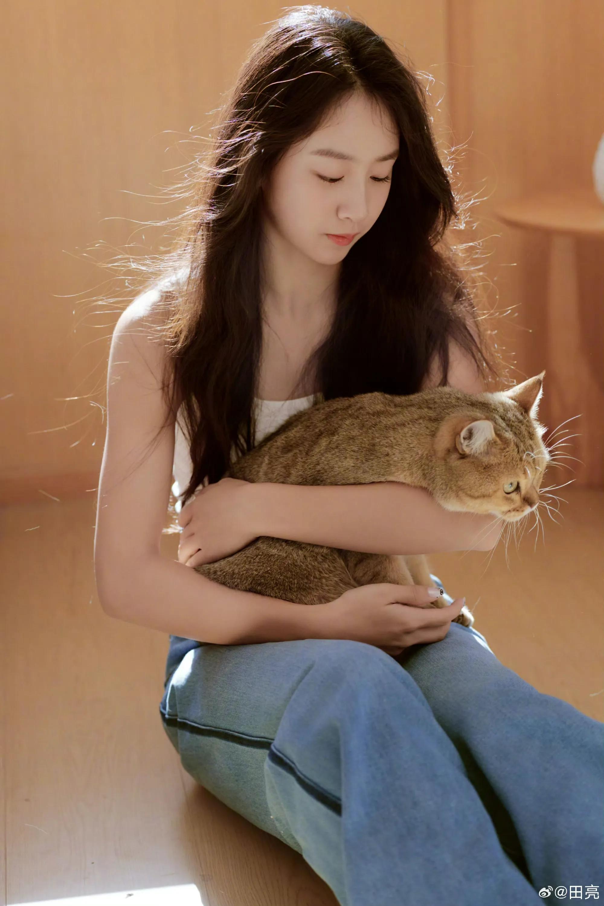 森蝶还抱着自己的爱宠橘猫一起出镜,满眼温柔宠爱,看的出来森蝶真的很喜欢小动物呀。