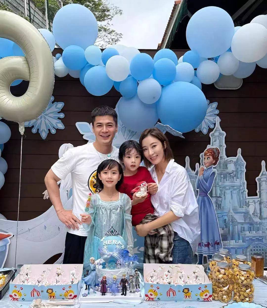 2026年4月12日,杨怡(现名杨茜尧)在社交平台晒出全家福,为女儿小珍珠庆祝6岁生日。照片中,小珍珠身穿蓝色爱莎公主裙,头戴皇冠,甜美可人,宛如从童话中走出的小公主;弟弟Eden则身穿红色T恤配格纹裤,虎头虎脑,眼神清澈,被网友称为“迷你版罗仲谦”。罗仲谦一手抱着女儿,一手抱着儿子,杨怡依偎身旁,一家四口笑容灿烂,画面温馨有爱。