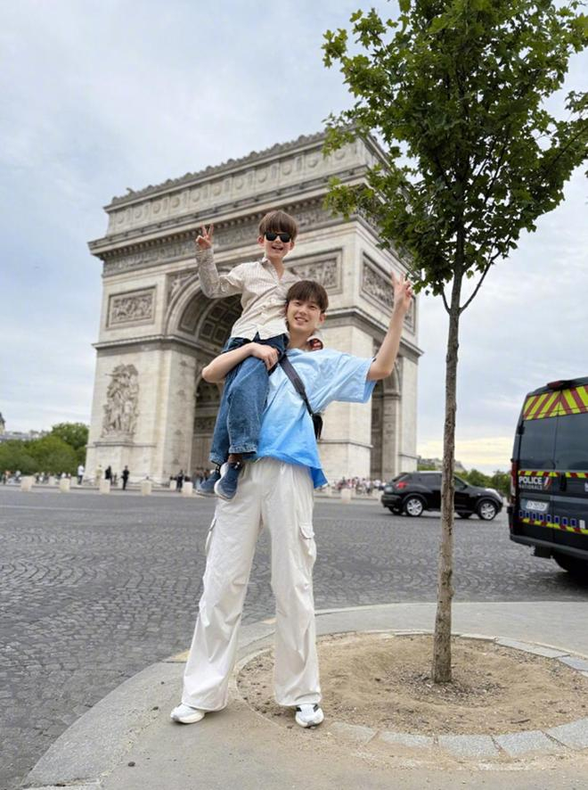 董力镜头下,阿诺和儿子站在夕阳下,7岁儿子尤里斯看着前面的美景,阿诺则歪着头一脸宠溺看向儿子。阿诺虽然只有一个背影入镜,但老公镜头下的她身材纤瘦高挑,巴掌大的脸蛋,扎着丸子头少女感十足。大概是察觉到妈妈温暖的目光,本来看风景的尤里斯慢慢侧过头看向妈妈,脸上露出温暖的笑容十分治愈。