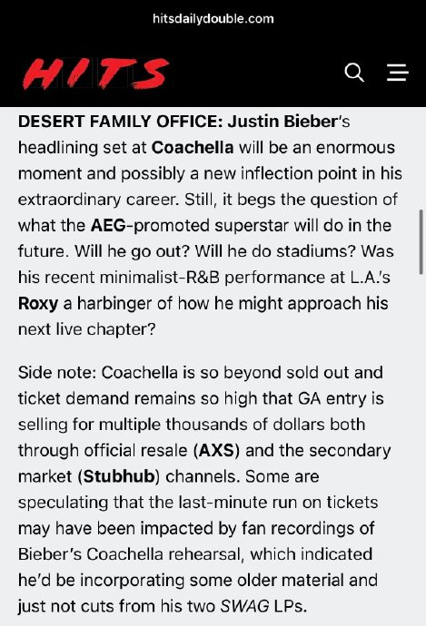 2. 需求指数级膨胀:视频泄露后24小时内,二手平台StubHub、Viagogo等出现抢票潮,单日搜索量暴增300%。比伯演出日(4月18日)的门票被迅速锁定为核心标的。