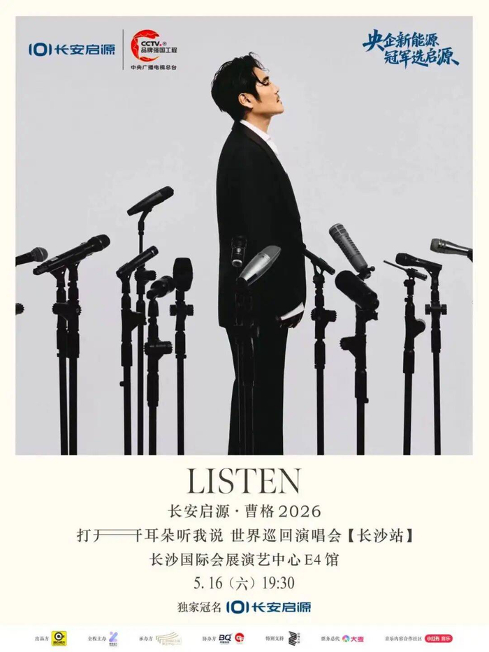 明日(4月28日)16点18分,长安启源·曹格2026《打开耳朵听我说》世界巡回演唱会即将开启第三站长沙站的预售,敬请长沙的歌迷朋友第一时间参与抢票,不要错过精彩演出。