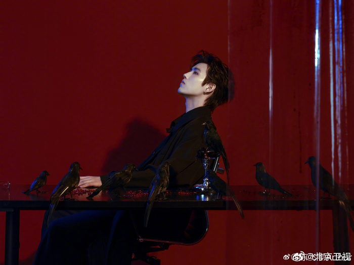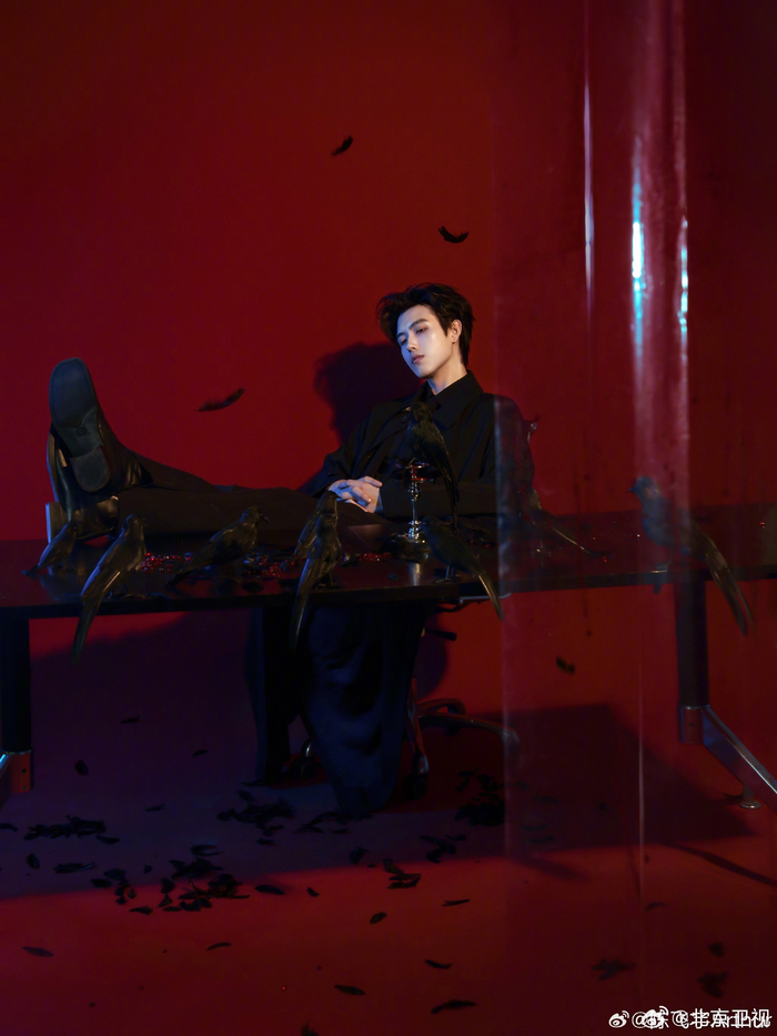 #陈飞宇红黑氛围感大片#破碎镜片、飘落羽毛、红蓝光影交织,@陈飞宇Arthur 一身黑衣,将冷感与张力拉满,每一帧都像电影里的危险反派!#陈飞宇[超话]#