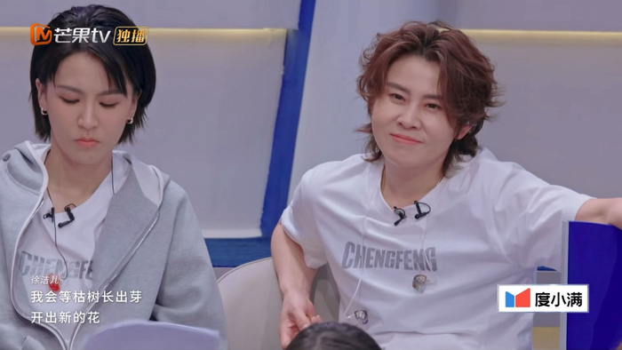 王濛就这样欣慰地看着努力唱歌的李小冉