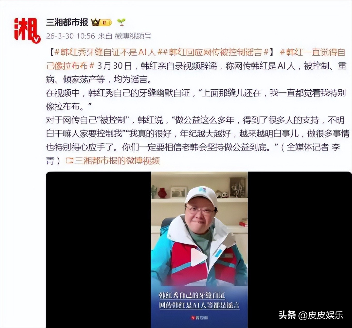 韩红露面,紧急辟谣!.鲁中晨报