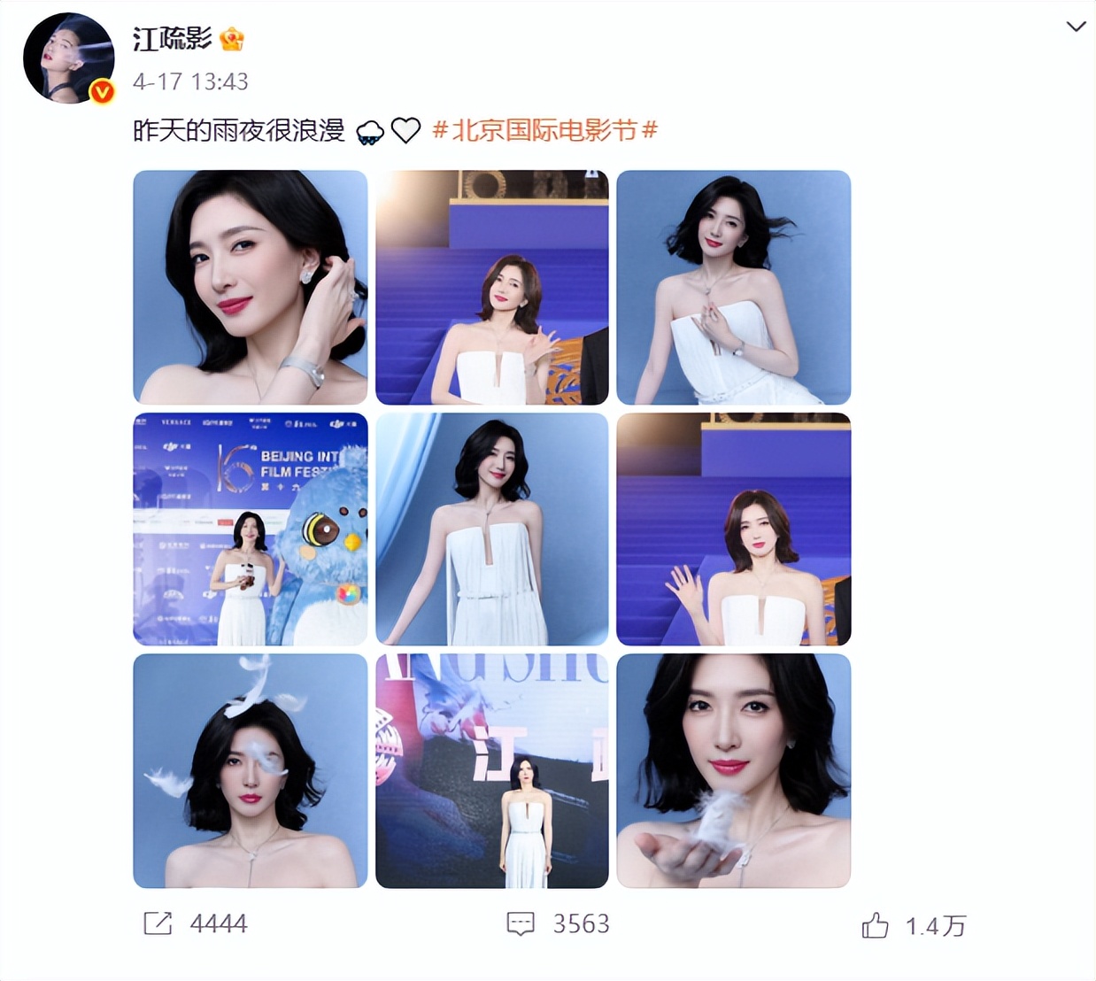 时间来到了4月16日,电影节开幕式的消息传的很广,但参与到现场的她本人却相当的低调,