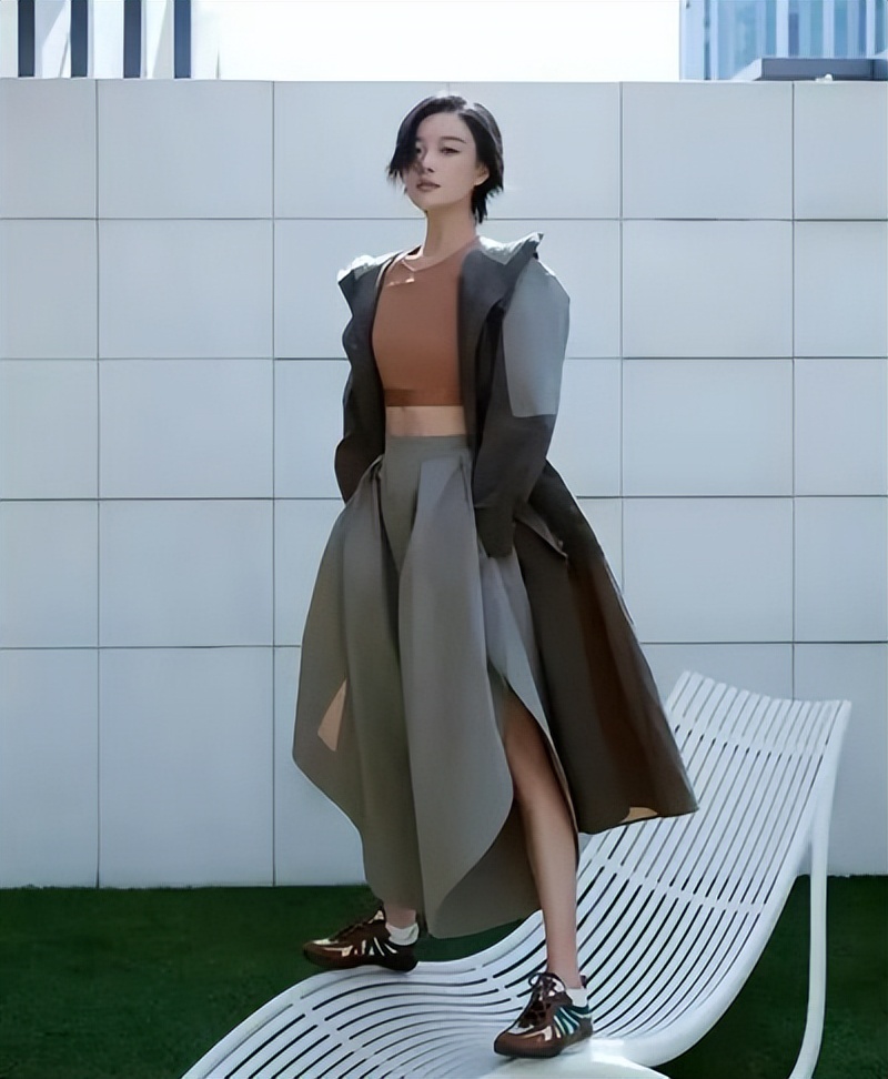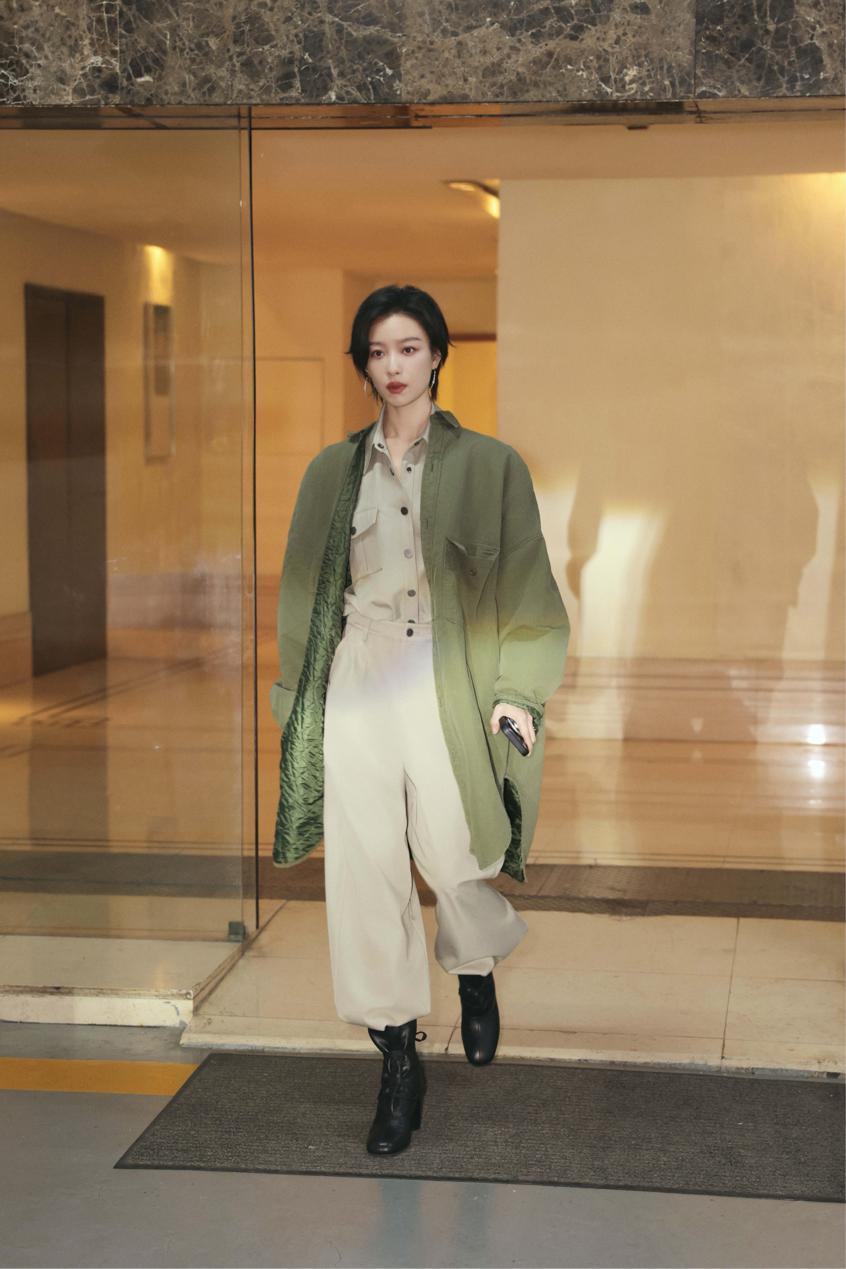 当发丝不再堆在肩上,服装的魅力也会更加显著,立领款式的长风衣,配条牛仔阔腿裤,裹上穿又美又飒。