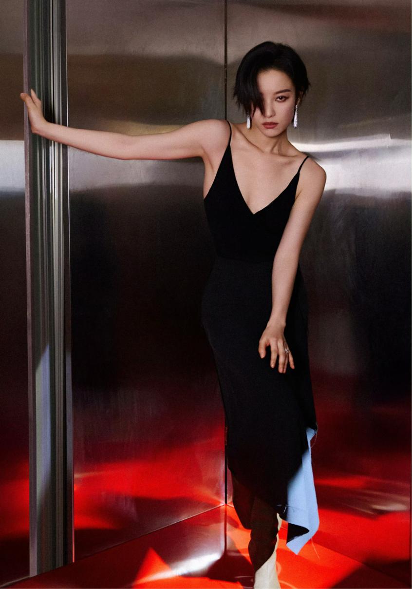 看倪妮这一组吊带裙的造型,你就知道短发的可塑性有多高了,深V领+细吊带+修身剪裁,性感一触即发。