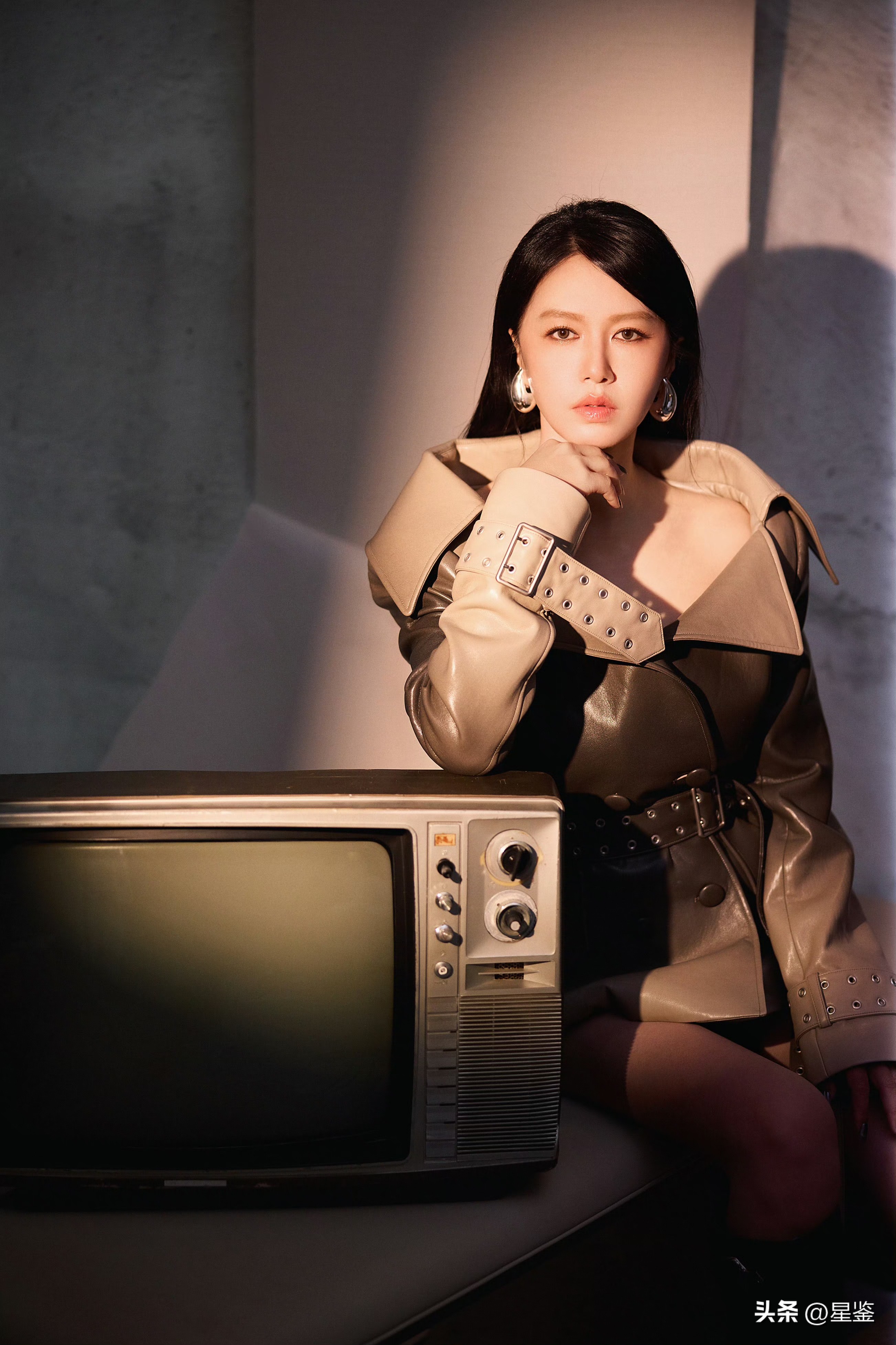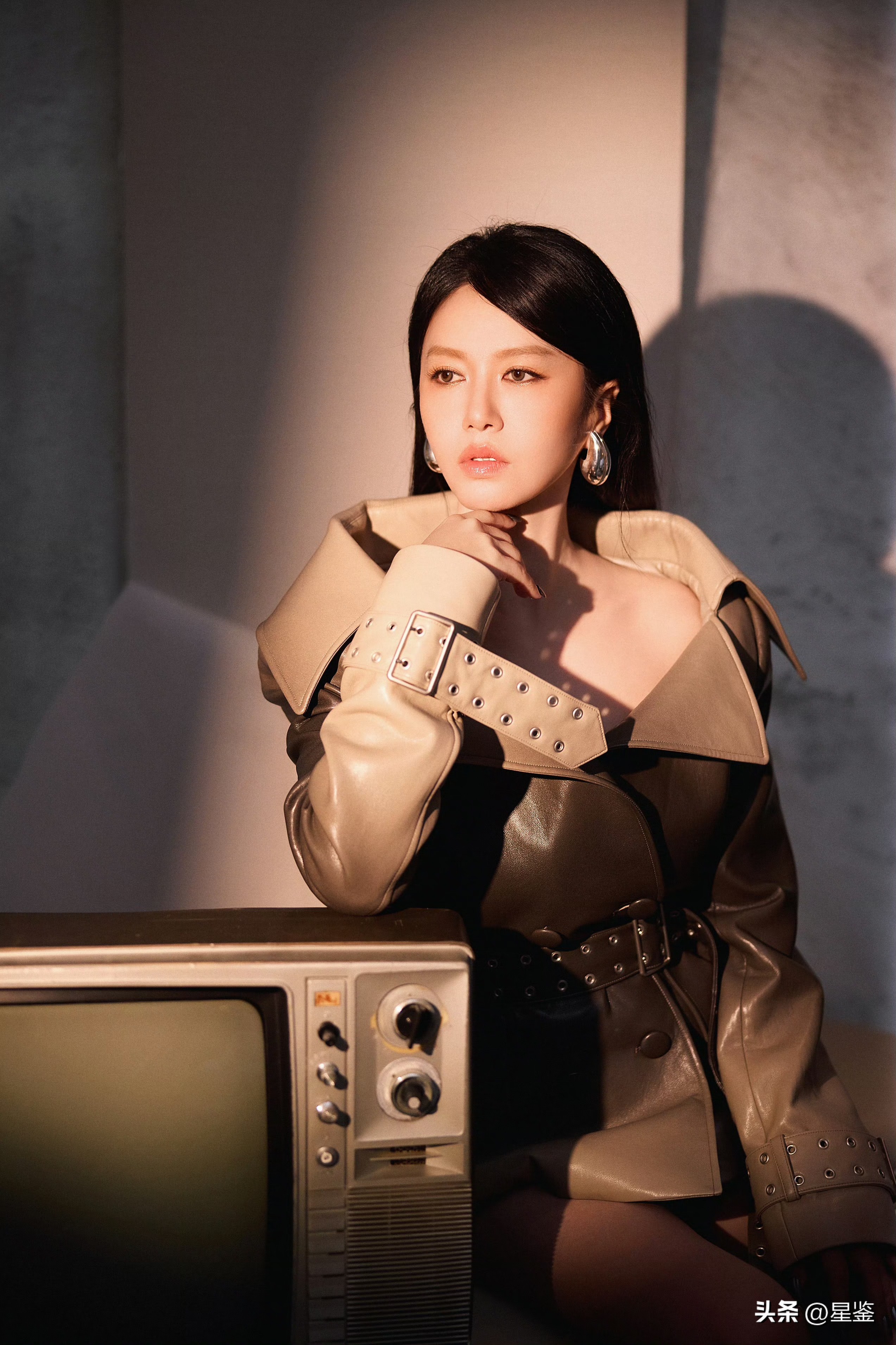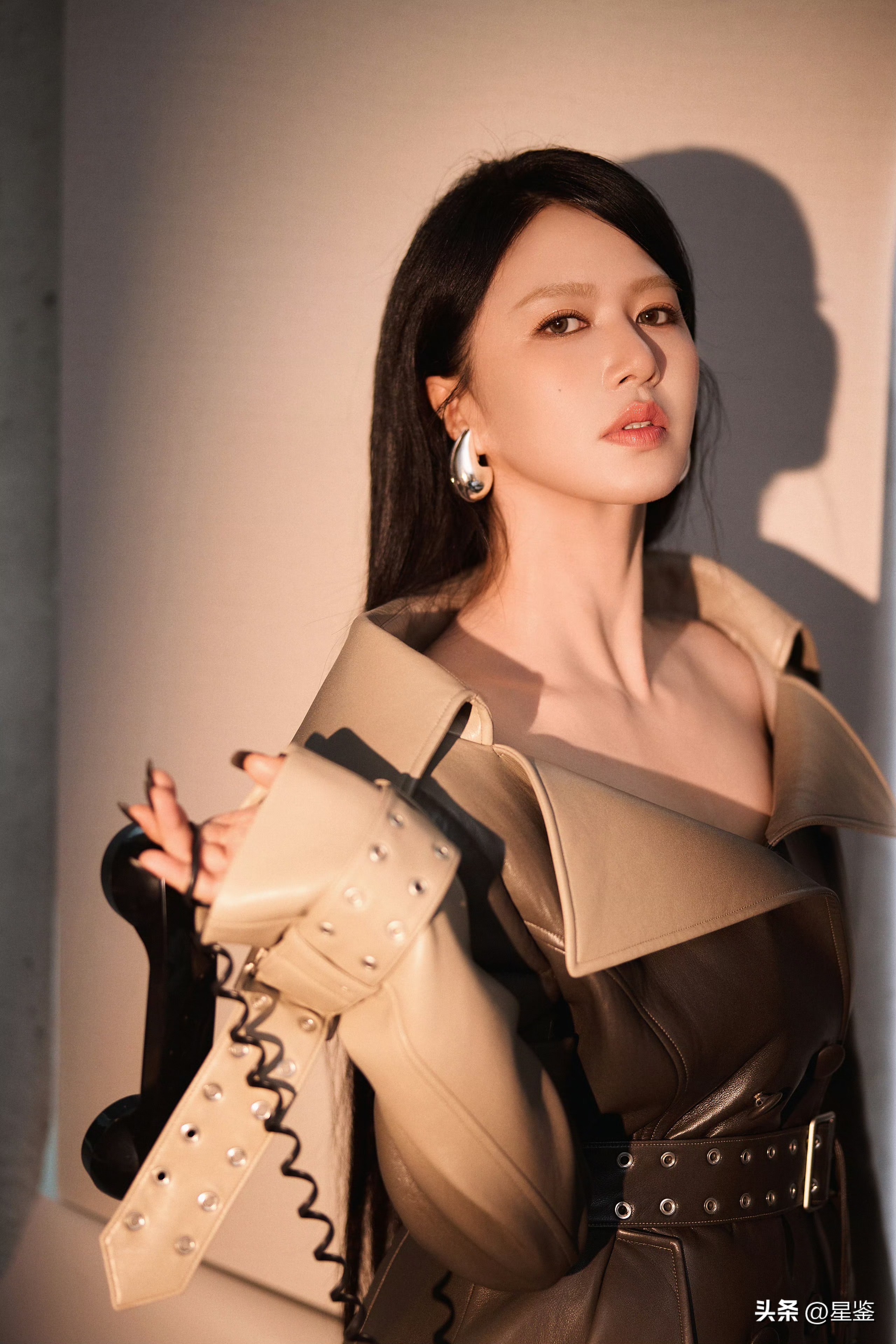 这组造型简直是大女主气场的肉包!谭维维一身复古渐变色皮衣,走在街上直接让人怀疑她是不是穿越了某个古代豪门小姐的打扮,皮衣的设计可谓是绝绝子,深棕到米白的颜色晕染不仅有复古感,还带着一丝酷炫的金属感,整个人看起来既温柔又高冷,绝对是让所有人驻足凝视的存在。,翻领设计更是点睛之笔,大翻领的设计勾勒出完美的肩颈线条,性感程度简直不要太高,完全不用刻意,随便一个眼神都能让人心动,铆钉腰带和双排扣设计精准到极致,腰肢一收,气场瞬间拉满,身材比例感强到让人移不开眼睛,袖口的绑带设计更是细节之王,既有女性的柔美感,又不失力量感,走动时随性而不失优雅,简直是穿搭界的完美结合。,配饰更是把整套造型推向了一个新的高度,夸张的银色水滴耳饰,瞬间提升了造型的辨识度,与皮衣的金属感完美呼应,让人忍不住想要摸一摸耳朵上的水滴,黑色长靴的选择更是贴心到位,利落又酷飒,和整体风格完美融合,刚柔并济,气场拉满,简直是配上这双长靴,谁都比不过她。,最让我惊叹的是这套造型的实用性,日常穿搭的时候,只需要去掉超长的绑带,换上一个简约的内搭,就能瞬间成为出街的焦点,要是去参加一些正式的场合,保留设计,直接就是全场的焦点,谭维维面对这套造型,表现得非常从容自信,松弛的状态下每一个眼神、每一个动作都透着独特的光芒,仿佛在用风格来彰显她的个性,这才是真正的穿搭天花板。,这套造型简直是大女主造型的典范,复古又酷炫,实用又高级,气场满满的,谭维维驾驭这套造型的状态更是让人心动,仿佛她是这套衣服的最佳代言人,无论是日常还是正式场合,这套造型都能让她轻松成为全场的焦点,真是太劲爆了!