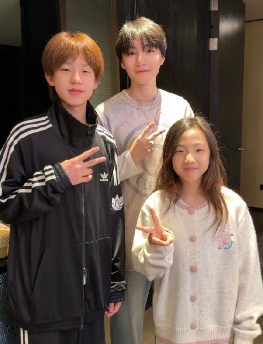 照片中王俊凯与12岁的小泡芙并肩而立,刘畊宏儿子刘宇恩也一同出镜。小泡芙已从《爸爸去哪儿》时期的萌娃蜕变为长发及腰的少女,标志性婴儿肥和甜酒窝依旧,身高接近父亲肩膀,被赞“等比例长大的甜妹”。王俊凯则以顺毛造型亮相,清爽少年感十足,粉丝调侃“像同龄人”。