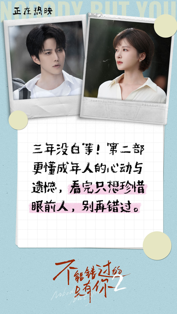 《不能错过的只有你2》不仅是一部爱情电影,更是一场关于现实、勇气与坚守的情感对话。它以“爱赢万难”为核,以治愈为魂,为观众带来笑泪交织的观影体验。三年前,《不能错过的只有你》戳中无数年轻人的爱情心事;三年后,续作携全新故事归来,依旧真诚,依旧扎心,依旧让人相信——真爱值得坚守,不能错过的只有你。