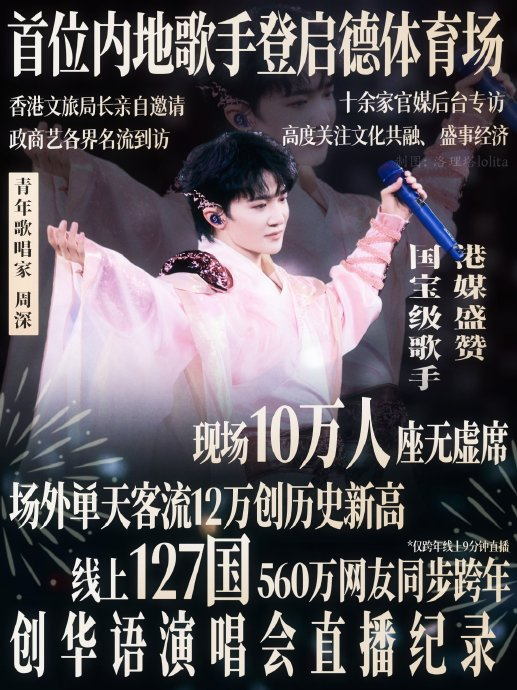 香港文旅局长亲自邀请其在启德体育场举办香港首个个人跨年演唱会,创下场馆启用后最高客流纪录;多地文旅部门争相邀请巡演,带动区域文化消费热潮,彰显文化共融价值。
