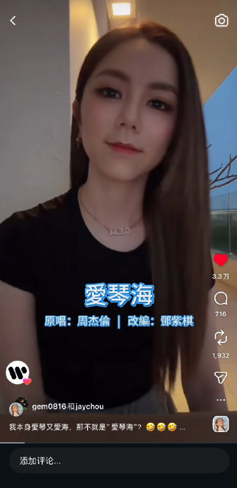 2026年4月21日,邓紫棋在社交媒体发布对周杰伦歌曲《爱琴海》的改编版本,并幽默配文:“我本身爱琴又爱海,那不就是‘爱琴海’?”巧妙融合个人名字谐音与歌曲主题。她明确标注“原唱:周杰伦;改编:邓紫棋”,展现对版权的尊重。更值得关注的是,周杰伦当日通过Instagram转发并盛赞:“感谢翻唱,听起来太棒了!让我们一起用音乐治愈世界。”邓紫棋即刻回应:“我的荣幸!”两代天王的双向奔赴,被乐迷视为对当年遗憾的浪漫补完。
